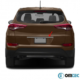 Nerez lišta hrany nad SPZ Omtec Hyundai Tucson 2015-18, Opel Corsa 2015-19, Peugeot 301, 308 2013+