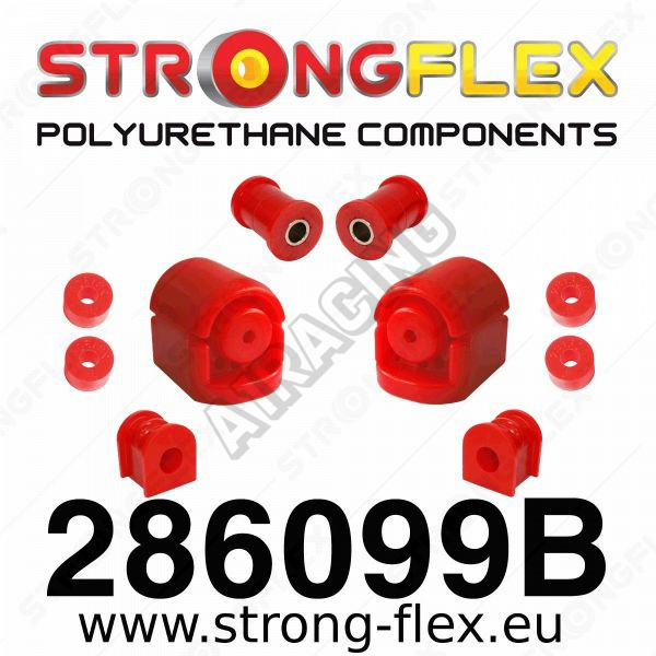 Tvrdší silentbloky dodá vašemu autu lepší kontrolu i jízdní stabilitu hlavně při průjezdech v zatáčkách. Firma StrongFlex vyrábí tyto komponenty z kvalitnějších materiálů než jsou z prvovýroby, dodává 2 tvrdosti a to základní červenou 80 ShA, která je o něco tvrdší než oem provedení a potom žlutou sport o tvrdosti 90 ShA, která se už hodí spíše pro sportovní účely. V galerii fotek je vidět použití jednotlivých silentbloků