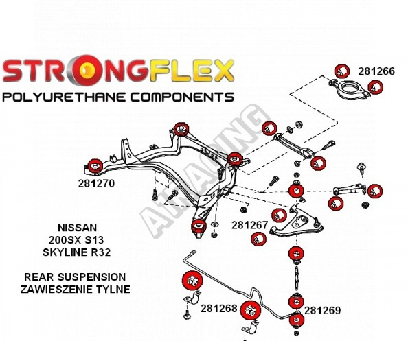 Nissan 200SX S13 1988-93 StrongFlex Sport sestava silentbloků jen pro zadní nápravu 20 ks obsahuje: