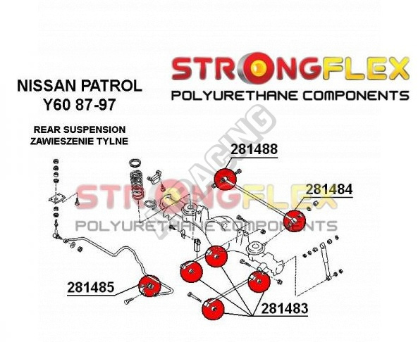 Nissan Patrol Y60 1987-97 StrongFlex (tvrdost 80ShA) kompletní sestava silentbloků na celé auto obsahuje :