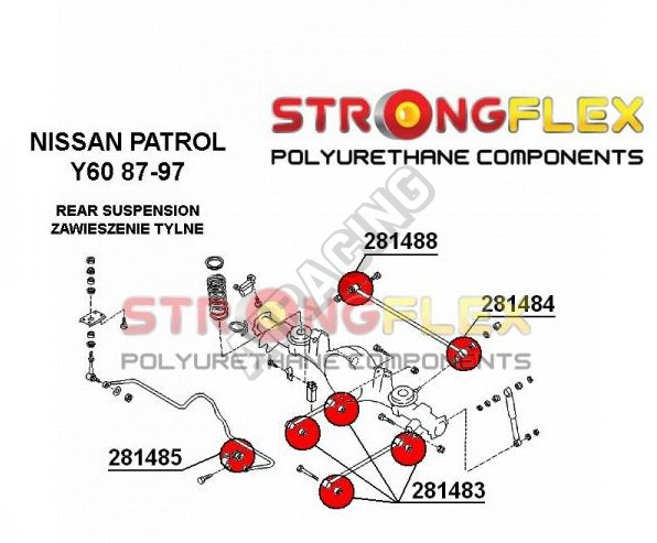 Nissan Patrol Y60 1987-97 StrongFlex Sport sestava silentbloků jen pro zadní nápravu 12 ks obsahuje:
