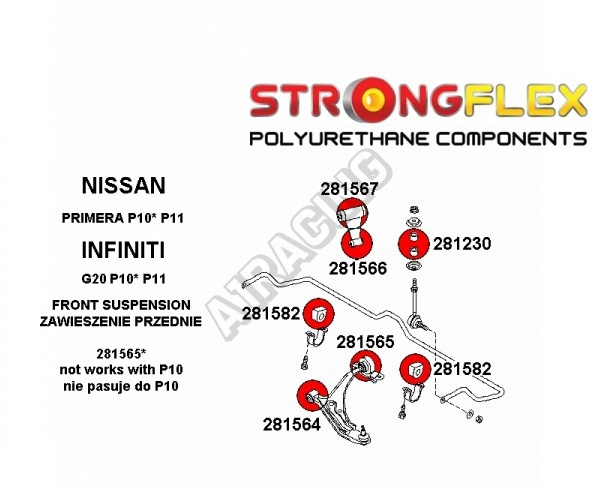 Nissan Primera StrongFlex Sport sestava silentbloků jen pro přední nápravu 11 ks obsahuje: