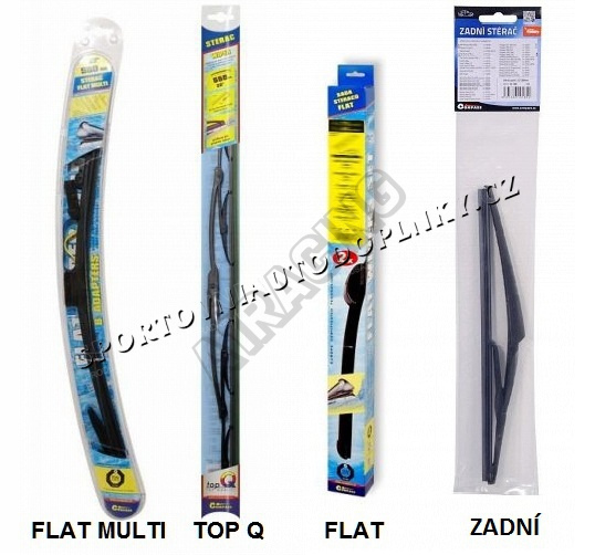 Stěrače FLAT SET (sada 2 ks na celé auto). Vysoce kvalitní pružný člen plochého stěrače zajišťuje stejnoměrný tlak grafitového břitu v celé jeho délce, což zamezuje rozmazávání nečistot a vytváření pruhů.