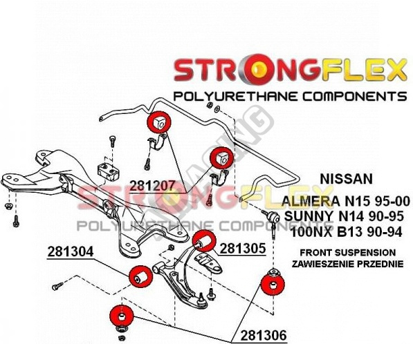 Nissan Sunny StrongFlex sestava silentbloků jen pro přední nápravu 7 ks Tvrdší silentbloky dodá vaš