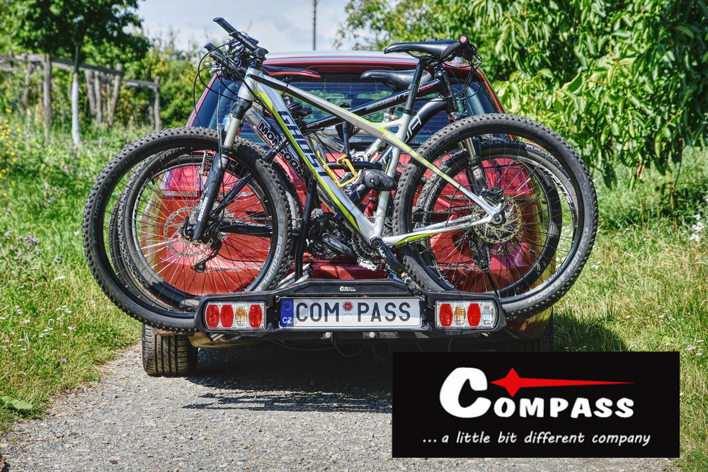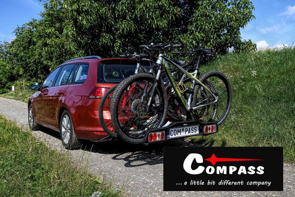 Univerzální nosič jízdních kol s jednoduchým systémem upevnění, s kompletně osvětleným panelem a místem pro SPZ.