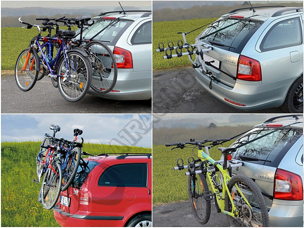 Univerzální nosič jízdních kol, s jednoduchým systémem upevnění na zadní dveře. Do nosiče je možné umístit až 3 běžná jízdní kola.