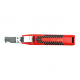 Nůž je vyroben z vysoce kvalitních materiálů. Umožňuje odizolovat izolaci napříč i podél drátu. Rukojeť je vyrobena z dvousložkového plastu. Příjemný na dotek černý protiskluzový díl a červený tvrdý a odolný zapínací díl.