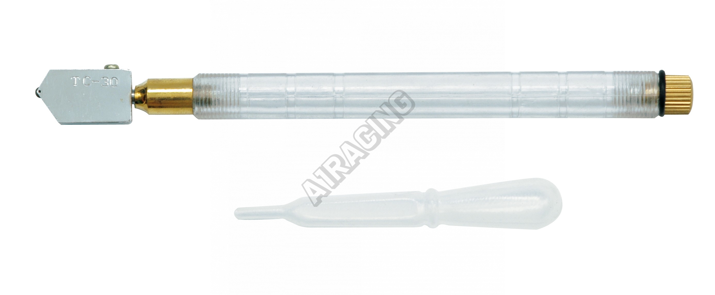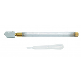 Nůž na sklo vybavený pohyblivou pracovní hlavou zakončený řezným kotoučem. Rukojeť má olejovou nádrž