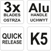 Souprava obsahuje 3 ks břitů z uhlíkové oceli K5. Tělo nástroje je zhotoveno z hliníku.