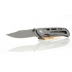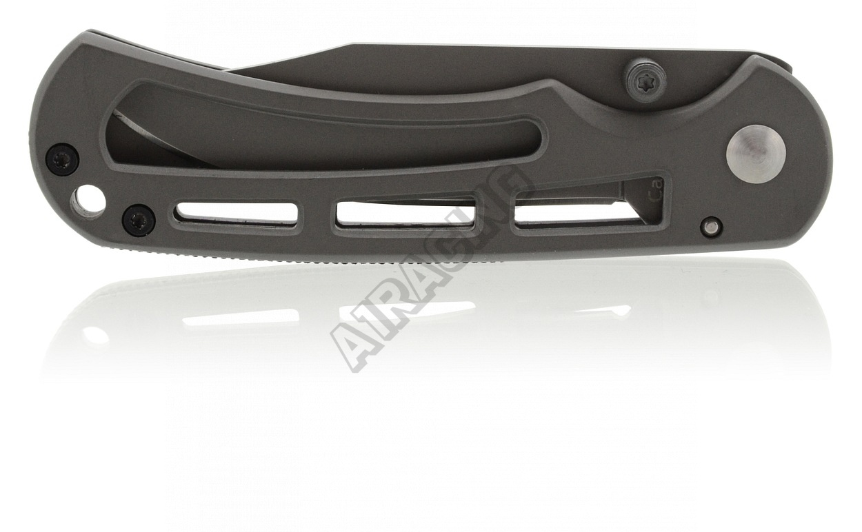 Rukojeť s atraktivní perforací obou střenek, na zadní straně vybavena klipsem k přychycení za okraj kapsy, opasek apod. Střenky jsou kvalitně zpracovány z nožířské oceli 420J1 potažené titanem.