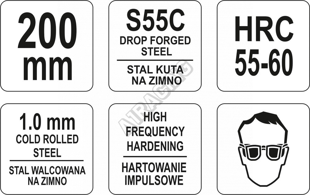 Zhotovené z S55C oceli 55-60 HRC. Oplastované rukpojeti zabezpečují míru komfortu při práci.