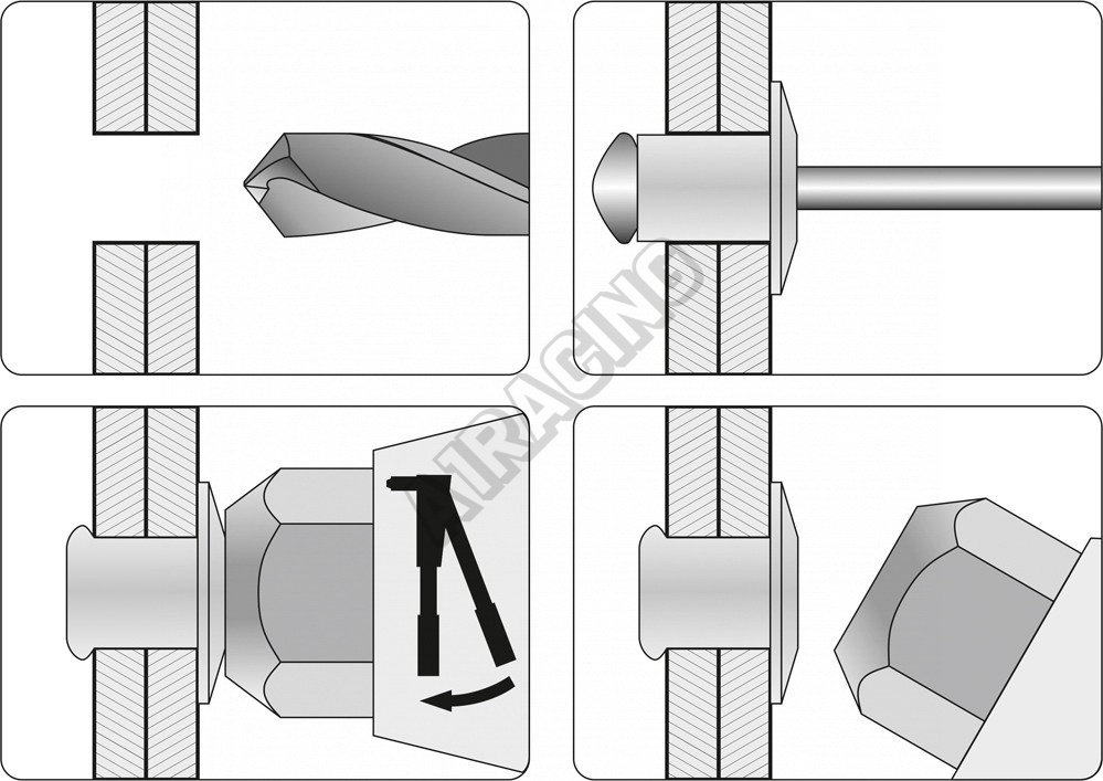Kleště jsou vhodné pro nýty z oceli, nerezové oceli a hliníku s rozměry 2,4; 3,2; 4,0; 4,8 mm.
