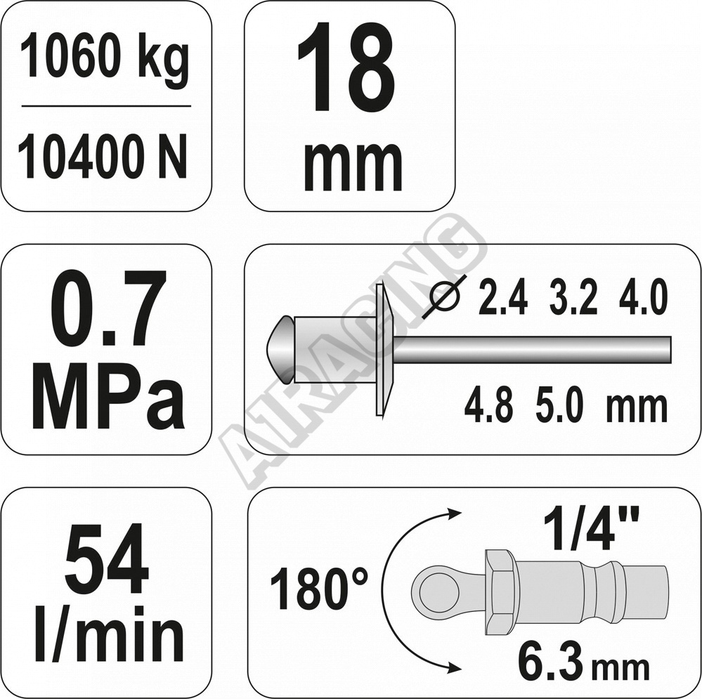 Pneumatická nýtovačka YT-36171. Trvalé spojování kovových prvků. • otočné tlakové připojení umožňuj