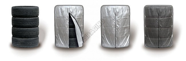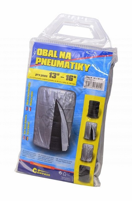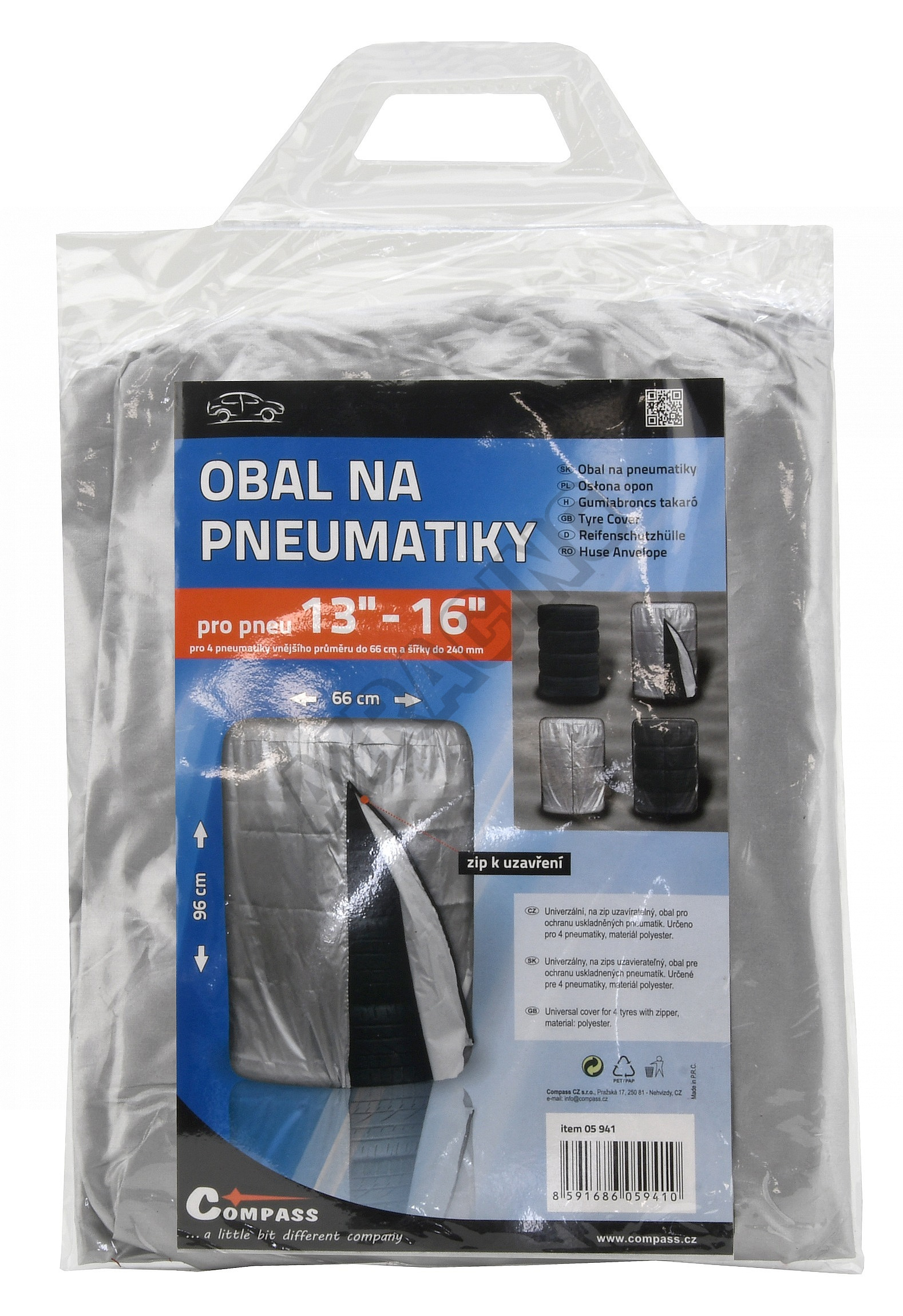 Obal na 4 pneumatiky, na zip uzavíratelný. Velikost 66 x 96 cm, vhodné pro 13" - 16" pneumatiky vnějšího průměru do 66 cm a šířky pneu do 240 mm. Ideální pro ochranu uskladněných pneumatik. Materiál polyester.