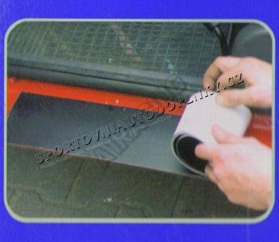 - kvalitní hrubá černá ohebná folie s podlepením, která vypadá jako plast, je určena pro prahy auta v místě pod dveřma, kde je nástupová hrana a nebo pro zadní nárazník v místě pod kufrem, kde dochází k největšímu otěru při nakládání