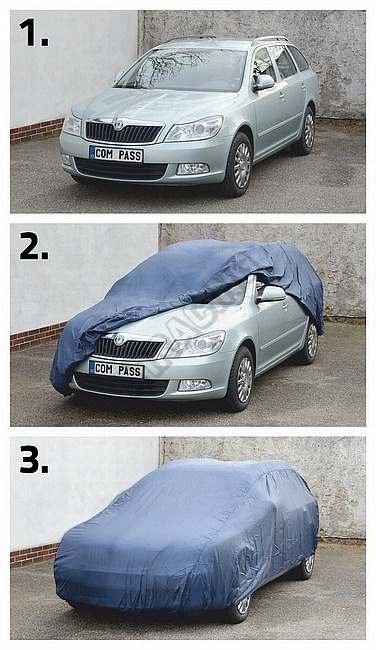 | Prodyšná plachta na celý vůz. Zabraňuje mírné vlhkosti a námraze, vhodná proti znečištění vozu. Chrání karoserii vozidla proti povětrnostním vlivům a před UV zářením. Jednoduché univerzální upevnění pomocí všité gumy ve spodní části. Baleno v praktickém, na zip uzavíratelném balení, do kterého lze plachu po použití snadno složit a uskladnit.
