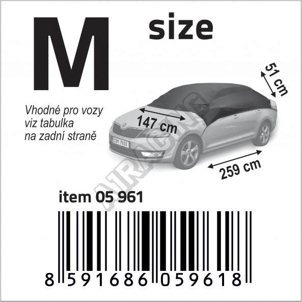 Ochranná plachta NYLON M 259x147x51 cm Prodyšná plachta na horní část automobilu. Optimálně zabraň