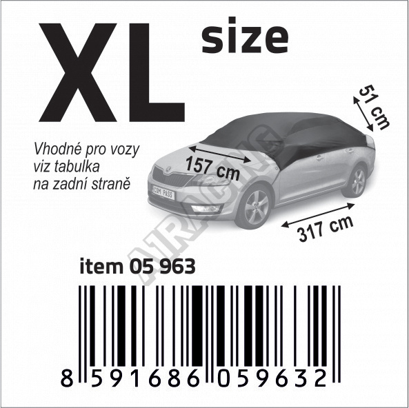 Prodyšná plachta na horní část automobilu. Optimálně zabraňuje tvoření námrazy na sklech, je vhodná i proti znečištění vozu.