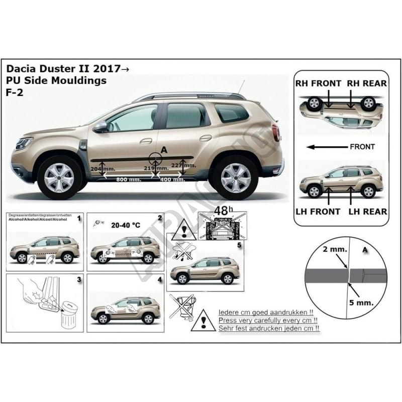 Ochranné boční lišty na dveře, Dacia Duster II, 2017+ přesně na míru pro váš vůz vyrobeny dle souča