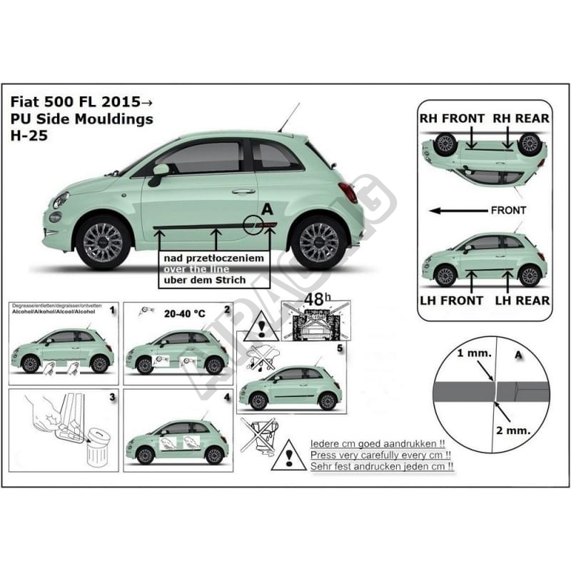 Ochranné boční lišty na dveře, Fiat 500, 2015+, HTB, Facelift přesně na míru pro váš vůz vyrobeny d