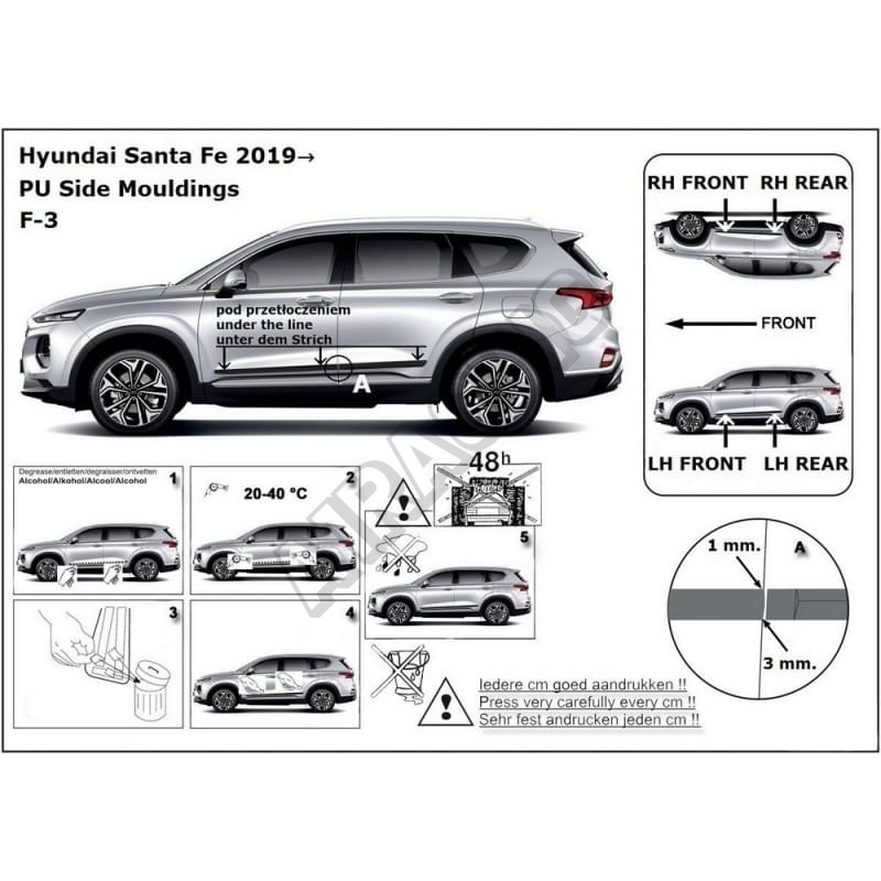 Ochranné boční lišty na dveře, Hyundai Santa Fe IV, 2018+ přesně na míru pro váš vůz vyrobeny dle s