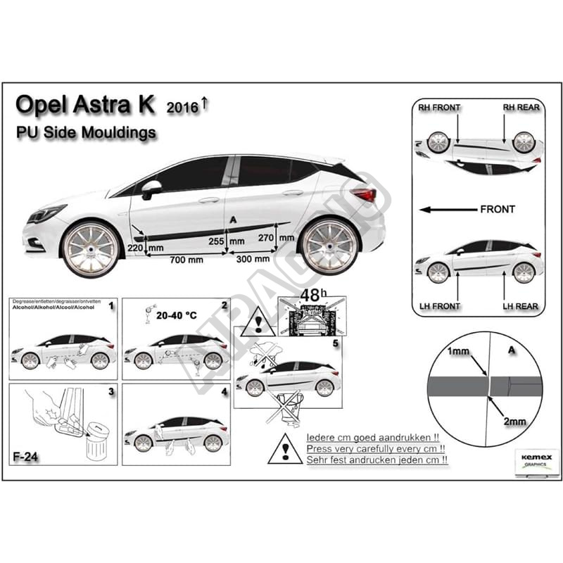 Ochranné boční lišty na dveře, Opel Astra K, 2015+ přesně na míru pro váš vůz vyrobeny dle současný