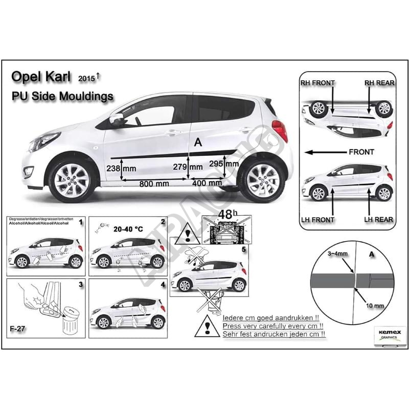 Ochranné boční lišty na dveře, Opel Karl, 2015+, 5 dveřové přesně na míru pro váš vůz vyrobeny dle