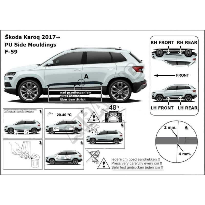 Ochranné boční lišty na dveře, Škoda Karoq, 2017+ přesně na míru pro váš vůz vyrobeny dle současnýc