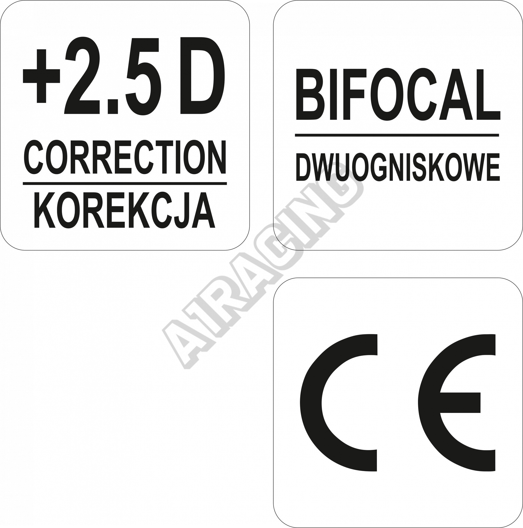 • speciální dvojité čočky zvětšující obraz: + 2,5 D