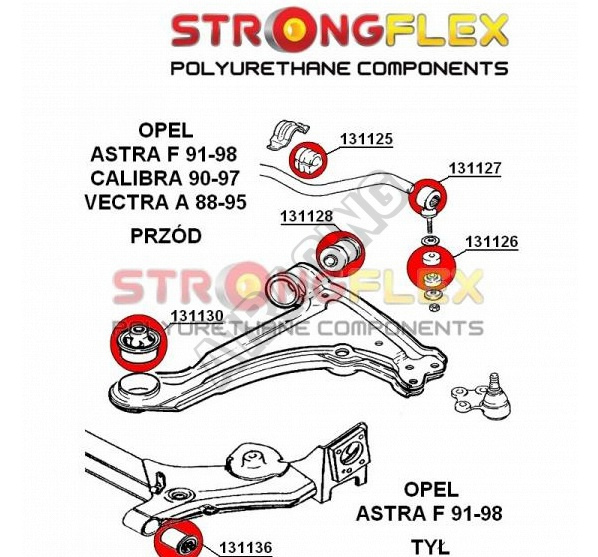 Opel Astra F StrongFlex Sport (tvrdost 90ShA) kompletní sestava silentbloků na celé auto obsahuje :