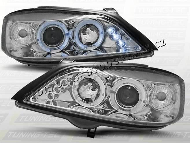 OPEL ASTRA G 1997-04 PŘEDNÍ ČÍRÁ SVĚTLA ANGEL EYES CHROME
