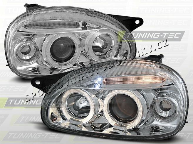 OPEL CORSA B 1993-00 PŘEDNÍ ČÍRÁ SVĚTLA ANGEL EYES CHROME