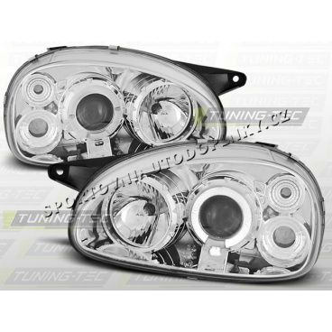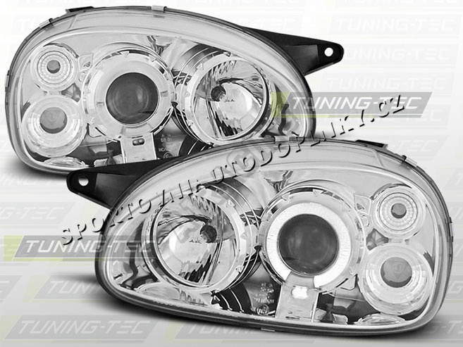 OPEL CORSA B 1993-00 PŘEDNÍ ČÍRÁ SVĚTLA ANGEL EYES CHROME
