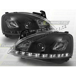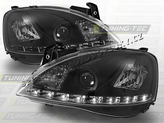 OPEL CORSA C 2000-06 PŘEDNÍ ČÍRÁ SVĚTLA DAYLIGHT LED BLACK