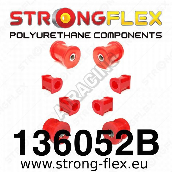 Tvrdší silentbloky dodá vašemu autu lepší kontrolu i jízdní stabilitu hlavně při průjezdech v zatáčkách. Firma StrongFlex vyrábí tyto komponenty z kvalitnějších materiálů než jsou z prvovýroby, dodává 2 tvrdosti a to základní červenou 80 ShA, která je o něco tvrdší než oem provedení a potom žlutou sport o tvrdosti 90 ShA, která se už hodí spíše pro sportovní účely. V galerii fotek je vidět použití jednotlivých silentbloků