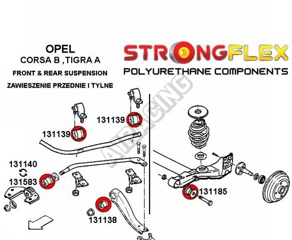 Opel Tigra A StrongFlex sestava silentbloků jen pro přední nápravu 8 ks obsahuje: