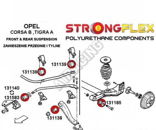 Opel Tigra A StrongFlex sestava silentbloků pro přední a zadní nápravu 10 ks obsahuje: