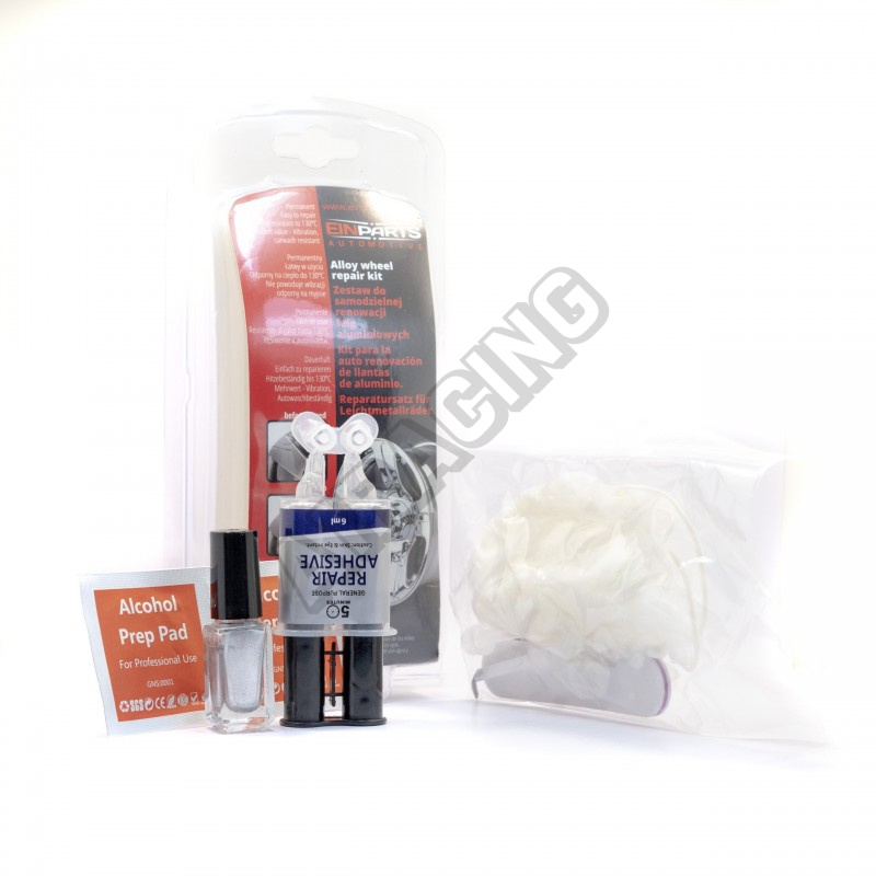 Tento Einparts Wheel Repair Kit je sada pro opravu poškozených hliníkových disků a disků z lehkých slitin od Německé firmy Einparts. Pomocí rychlovytvrzovací opravné pasty obsahující tekutý hliník snadno, rychle a dokonale zrenovujete poškození disků až do hloubky 1mm. Po přebroušení se poškozené místo přetře stříbrným lakem.