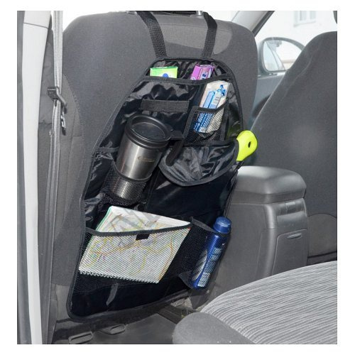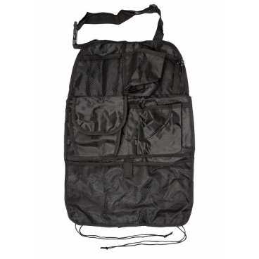 Organizér určený k připevnění na zadní stranu předního sedadla. Upevnění horní části pomocí popruhů za opěrku hlavy, spodní části popruhy za sedadlo. Jedinečné uspořádání - několik různých kapes vhodných pro mapy, nápoje a různé drobnosti.