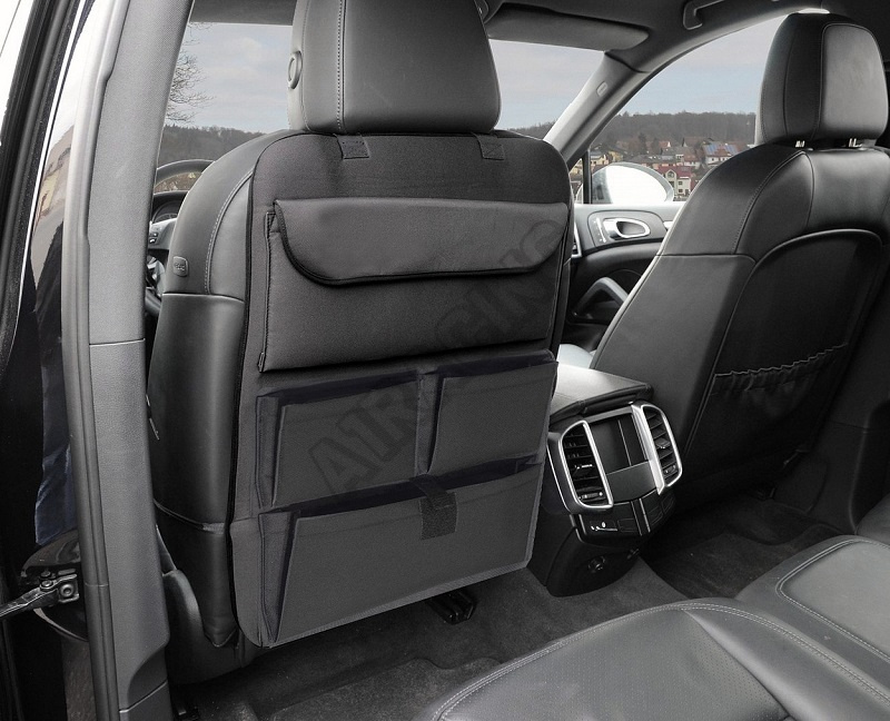 Organizér určený k připevnění na zadní stranu předního sedadla. Upevnění horní části pomocí popruhů za opěrku hlavy, spodní části popruhy za sedadlo. Několik různých kapes vhodných pro mapy, nápoje a různé drobnosti.