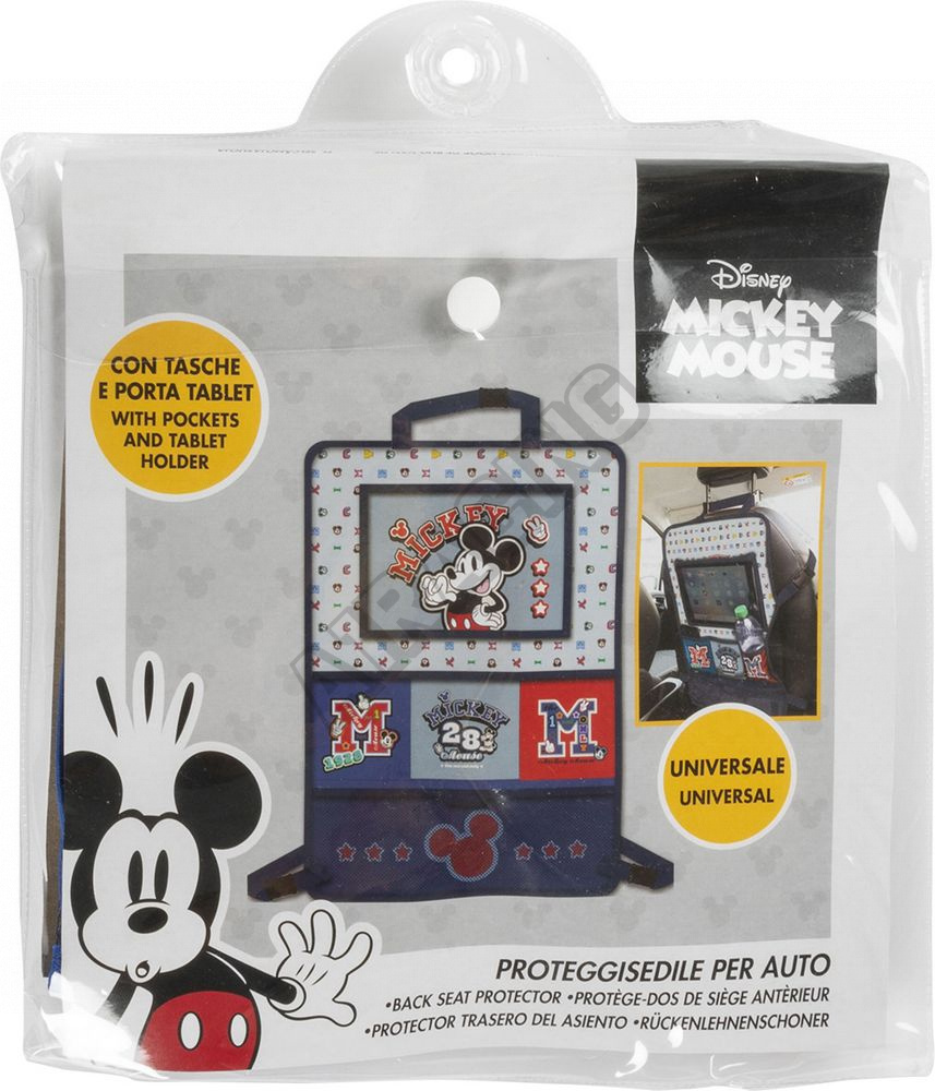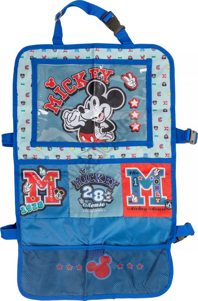 Organizér určený k připevnění na zadní stranu předního sedadla. S dětským motivem Mickey Mouse. Ide