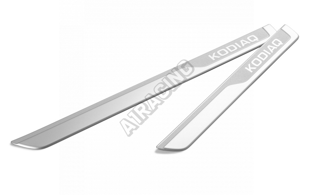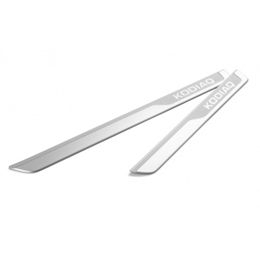 Dekorativní prahové lišty představují nejen praktické řešení ochrany prahů dveří, ale navíc propůjčují vozu vytříbenější vzhled. Chrání lak karoserie v místech u prahů předních a zadních dveří před nečistotami a mechanickým poškozením od podrážek bot nastupujících a vystupujících osob. Prahové lišty v kombinaci odolného plastového ABS materiálu a ALU vložky zaujmou svým líbivým designem každého řidiče. U těchto dekorativních lišt plní plastový materiál ochrannou funkci, ALU vložka pak navyšuje estetickou stránku interiéru vozu. Lišty dokonale kopírují tvar prahů dveří, na něž se ustavují pomocí šablon. Samolepicí pásky na spodní straně prahových lišt zajistí, že po nalepení zůstanou lišty na místě, kde mají být. Všechny prahové lišty jsou ozdobeny nápisem KODIAQ. V případě potřeby lze prahové lišty snadno vyčistit navlhčenou houbičkou. Jejich vzhled se oživí a budou zase jako nové.