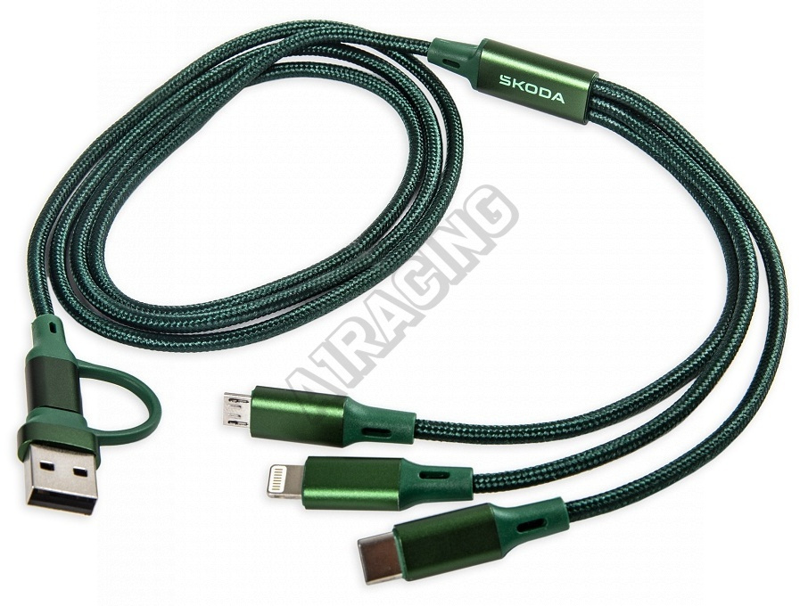 Originální dobíjecí kabel Škoda USB 4 v 1 Originální nabíjecí USB kabel 4 v 1 v nové barvě Emerald