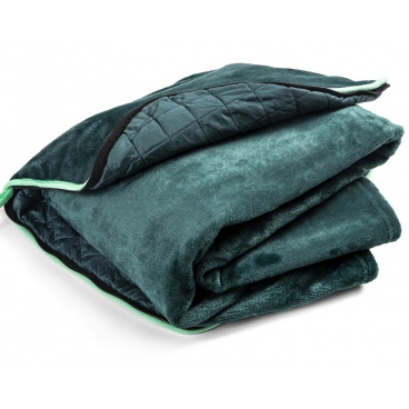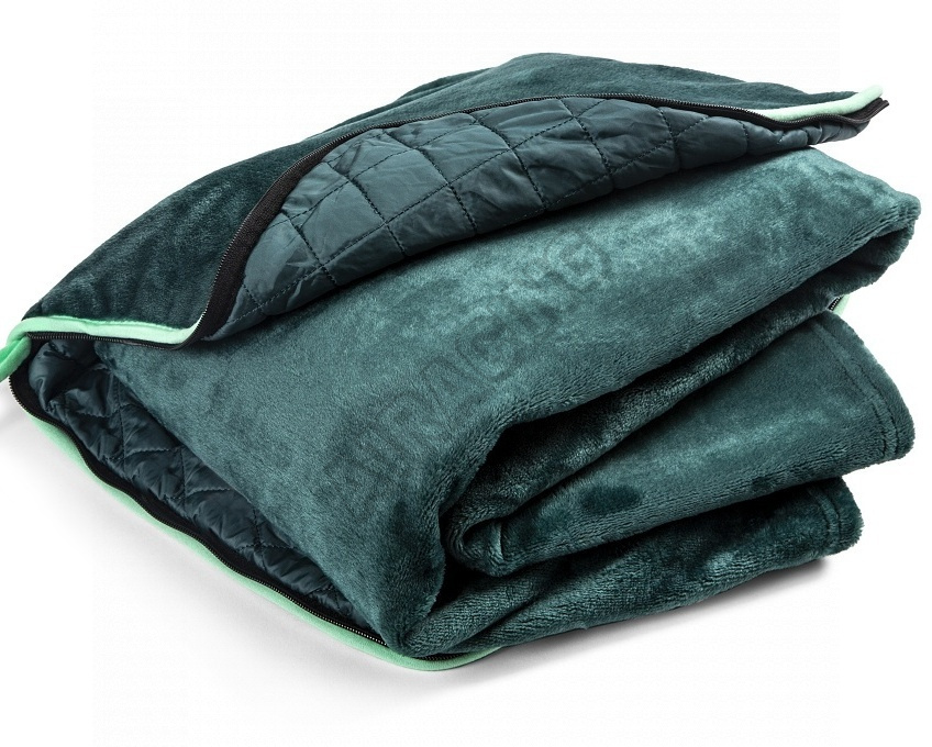 Originální praktická cestovní fleecová deka se může uložit do vaku na zip a vznikne polštářek, vše v emerald barvě.