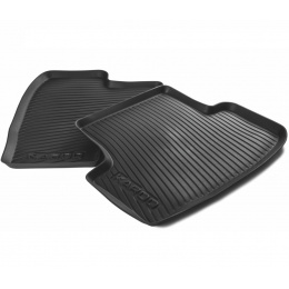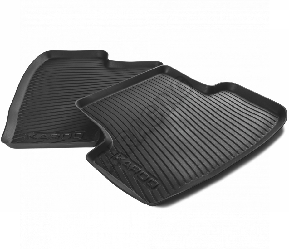 24 hodin denně, 365 dní v roce. Váš vůz ŠKODA KAROQ je vždy připraven k jízdě bez ohledu na dané roční období a právě panující klimatické podmínky. Za nepříznivého počasí se však do interiéru vozu mohou dostat nečistoty, které ulpívají na oděvu či obuvi pasažérů. Pro dokonalou ochranu podlahy vozu byly vyvinuty důmyslné celoroční vkládané koberce z termoplastického elastomeru. Nadstandardně kvalitní materiál a dostatečně vysoké bočnice koberců účinně zabraňují zašpinění a prosáknutí nečistot do podlahy vozu, ať už se jedná o prach, písek, štěrk, bláto, vodu či sníh. Svým unikátním tvarem dokonale vyplňují prostor pod nohama cestujících. Lze je jednoduše vyjmout a následně omýt běžnými čisticími prostředky. Náročný zkušební program, zahrnující kromě řady laboratorních zkoušek materiálu i dlouhodobé jízdní testy, jednoznačně prokázal odolnost koberců vůči mechanickému namáhání v suchém i mokrém prostředí. Díky těmto kobercům s protiskluzovou úpravou snadno docílíte čistého interiéru a zároveň ochráníte podlahu vozu před nežádoucími vlivy v průběhu celého roku. Řádné ustavení vložených koberců je nutné zkontrolovat vždy před každou jízdou. Při výměně koberců je nezbytné nejprve vyjmout koberce původní a teprve potom vložit koberce nové. Vrstvení koberců je z bezpečnostních důvodů zakázáno.
