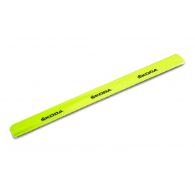 Samonavíjecí žlutá reflexní páska výrazně zvyšuje viditelnost v silničním provozu. Reflexní materiál je vidět na 10x větší vzdálenost. Páska je potištěna logem ŠKODA, na spodní straně je příjemný semiš.