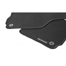 Obsah sady: 2 přední koberce s nápisem Octavia, 2 zadní koberce (Přední koberce - plastové fixační elementy k nacvaknutí na podlahové čepy. Zadní koberce - volně vložené)
