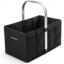 Praktický skládací nákupní košík z omyvatelného, vodoodpudivého a odolného materiálu se solidním hliníkovým uchem. Dno s vyjímatelnou podložkou. Elastická gumička, která drží koš ve složeném stavu. Tištěné logo Škoda na obou stranách v barvě electric green.