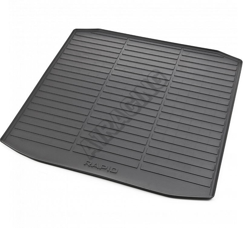 Gumový koberec do zavazadlového prostoru je velmi praktický pomocník. Můžete na něj pokládat zašpiněné předměty jako boty, sportovní náčiní, zahradnický materiál, dřevo a podobně, aniž byste museli mít obavy, že si zašpiníte podlahu. Tvar koberce kopíruje tvar zavazadelníku a přispívá k omezení nechtěného pohybu zavazadel. Koberec lze snadno a rychle omýt vodou. Koberec nekoliduje se síťovým programem a je na něm vylisován nápis Rapid.