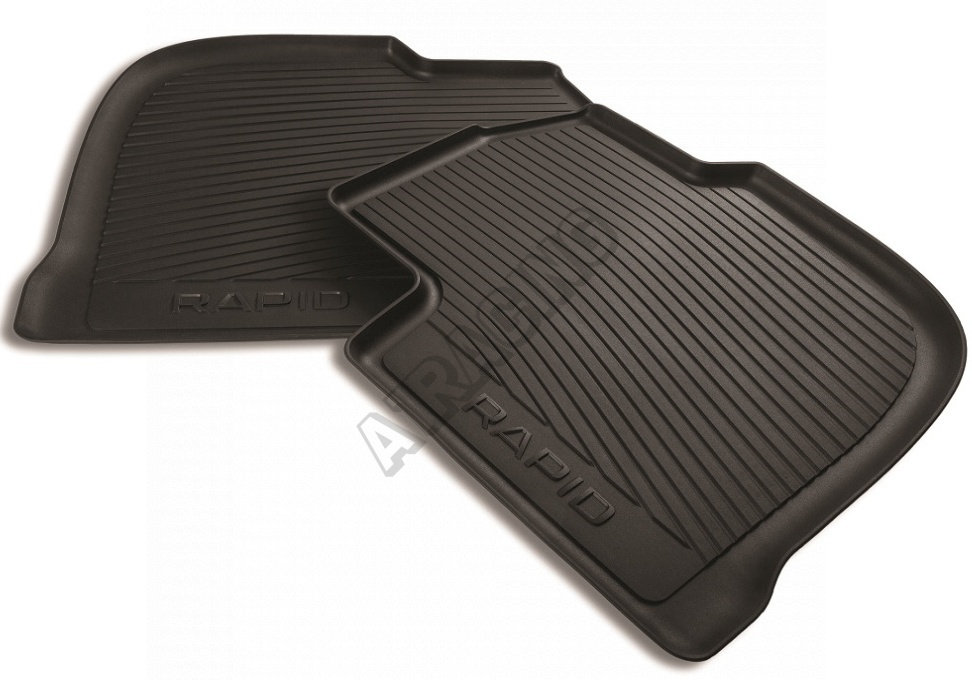 Vaše vozidlo Škoda Rapid je vždy připravené k jízdě bez ohledu na dané roční období a právě panující klimatické podmínky. Za nepříznivého počasí se však do interiéru vozidla mohou dostat nečistoty, které zůstávají na oděvu nebo obuvi pasažérů. Pro dokonalou ochranu podlahy vozidla byly vyvinuté důmyslné celoroční vkládané koberce z termoplastického elastomeru. Nadstandardní kvalitní materiál a dostatečně vysoké bočnice koberců účinně zabraňují zašpinění a prosáknutí nečistot do podlahy vozidla, ať už se jedná o prach, písek, bláto, vodu či sníh.